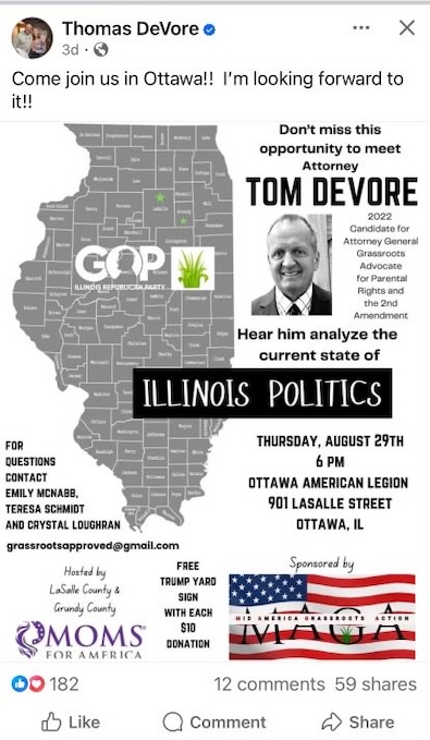 Why would DeVore think that holding an event at the Ottawa American Legion featuring Trump yard signs for a donation would fly?