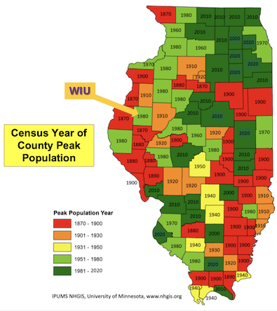 @ Lynn S. If you click through the link above, you can see the entire PowerPoint and the name of the author. If you email the author at WIU, he can send you maps showing the peak populations by county for Iowa, Kansas, and so forth.