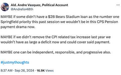 Vasquez strikes me as a good example of the next generation of alderman. Practically progressive with a lot of constituent contact. His statements are well put.