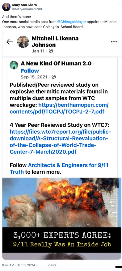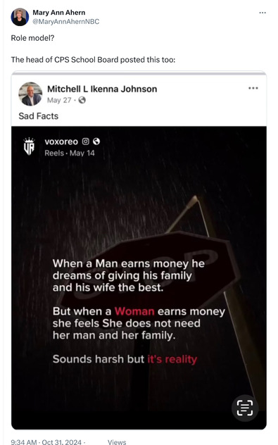 A spokesperson for Mayor Johnson did not immediately respond to a request for comment about the newly unearthed posts about 9/11 and women.