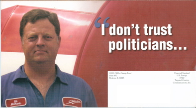 * Thanks to a reader for sending this direct mail piece from Republican congressional hopeful Marty Ozinga. I strongly encourage all readers to do the same.