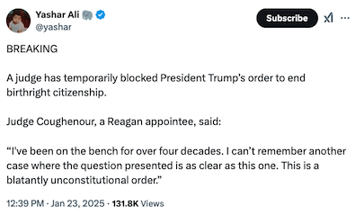 Now we sit and wait to see how the Trump administration responds. The biggest threat posed by the Trump administration is to the rule of law. I hope the Courts can be the check on the unconstitutional, authoritarian power that this administration is trying to use.