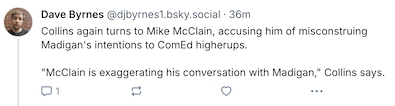 * Former House Speaker Michael Madigan’s attorney Dan Collins further separates his client from Mike McClain…