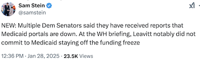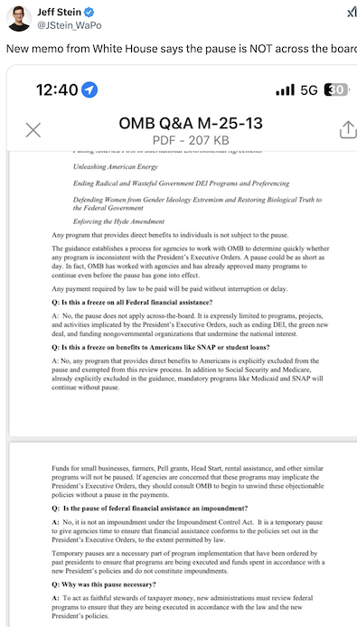I’m closing this down and starting a new thread https://capitolfax.com/2025/01/28/trump-administration-starts-at-least-a-partial-walk-back-after-furor/