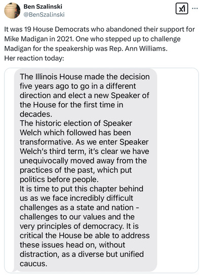 …Adding…Capitol News Illinois Reporter Ben Szalinski asked Rep. Ann Williams for her reaction…