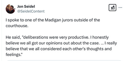 He believed Madigan was speaking the truth “from his lens” when he testified during the trial.