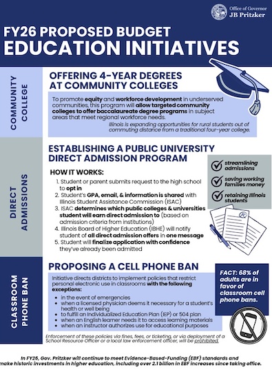 admissions process to reduce application fees;Lowering property taxes, enabling communities to decide if they want to consolidate townships or eliminate duplicative taxing bodies.