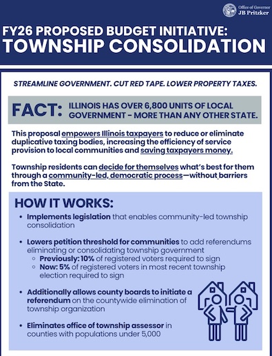 Thank you Governor Pritzker, Townships should have been Abolished 100 years ago. Most states do NOT have township government as well 17 of Illinois’ counties. Over 90% of township revenue comes from Property taxes.