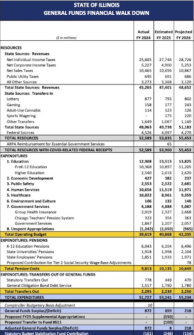 • General Funds FY26 revenues are estimated to total $55.453 billion, a $1.553 billion, or 2.9%, increase from revised FY25 estimates.
