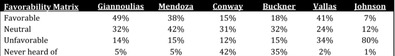 I’m surprised Mendoza has so many neutral and not as much favorable as I think she deserves. I think she’d be a good mayor.