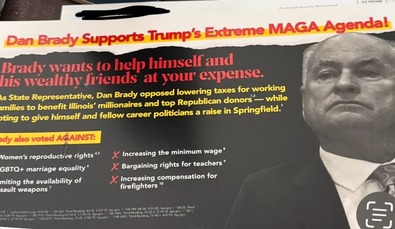 ===Dan Brady would be at the furthest outpost from a MAGA member.===
