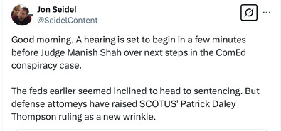 * A status hearing was held this morning in the ComEd Four case. Sun-Times Federal Courts Reporter Jon Seidel…