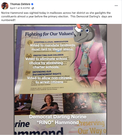 Norine Hammond has a very conservative voting record, works her District relentlessly and is a truly lovely human being.
