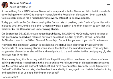 He’s against the folks who are holding institutional leadership positions within the Illinois GOP. The specifics don’t really matter and this is the kind of stuff that the Republican base has been trained to hone in on.