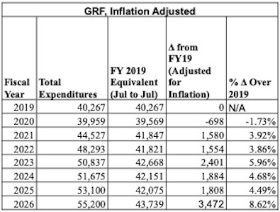 (For FY25 and FY26, inflation is measured from Jan 2019 through Jan 2025, instead of July to July, “due to data limitations,” so the overall increase is undoubtedly lower.)