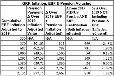 * More importantly, though, the legislator then factored in the evidence-based school funding formula and state pension contributions and discovered that the increase for everything else has been only 1.92 percent in inflation-adjusted dollars…