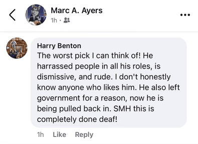 Harry Benton was responding to Sangamon County Board member Marc Ayers post, which was extremely anti-Christian Mitchell. Not a great look for a guy who wants to replace Bill Houlihan as Sangamon County Dems chair.