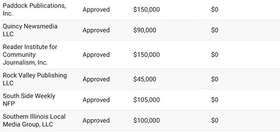 So far in Illinois, 61 entities have applied for funding with 49 of those approved. Five applicants had their applications denied and seven more applications remain under review. The Department of Commerce and Economic Opportunity did not immediately provide a response to written questions about who was denied and why.