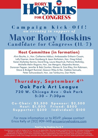 * Forest Park mayor Rory Hoskins joins the race for US Rep. Danny Davis’ seat…