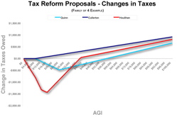 Take a look at the chart below that shows the tax cut or tax increase by income for a family of 4 for each of the plans. Click the pic for a much larger image…