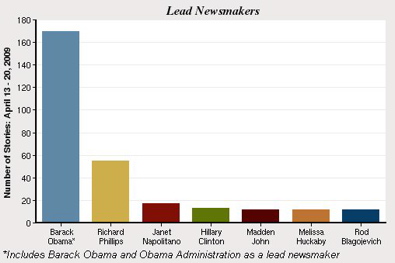 * The Pew Research Center’s Project for Excellence in Journalism publishes a weekly study of various aspects of news coverage, including leading newsmakers. Here is an item from this week’s report…