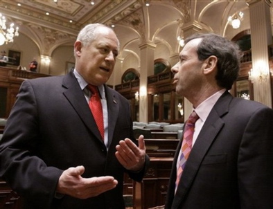 Gov. Quinn performs his impersonation of Sean Vinck to an unimpressed Pres. Cullerton.