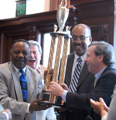 State Sen. Rickey Hendon, D-Best Side, receives the Sierra Club’s “Tree Hugger of the Year” award for his tireless efforts to halt the senseless documentation of how cronies in his district spend state grants.