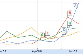One other thing- regarding the Mark Kirk, Alexi Giannoulias and Lisa Madigan comparison- it will only compare the accurate spelling queries- it doesn’t show inaccurate queries- so the Giannoulias numbers can be really misleading.. if they can’t spell the name- but lower in the page is the story they were looking for and they select it, they found the data without being captured in the graphed numbers,food for thought