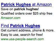 Keep in mind that not all searches will yield the same ad results since the Google ad program is a bit weird and complicated. But I did a few searches for each name and got essentially the same results, except for Hoffman.