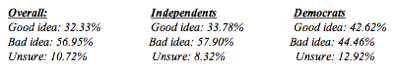 60% of women, 58% of independents and plurality of Democrats call plan a “bad idea”