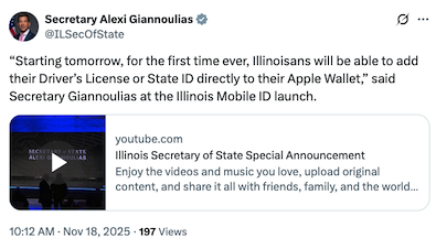 * WBEZ | As ICE operations move to North Carolina, coalition of Chicago minority groups vows to carry on the fight: “We see that the Texas National Guard is heading back home with their tails between their legs, and Mr. Bovino is escaping Chicago’s cold, but he’ll be back. Maybe we’ll see some level of normalcy, but we know that we’re still going to continue to have to fight ICE here, and they’ll be back again in the spring when it’s warmer,” said Castro, chief executive of the nonprofit Latino social service agency Casa Central, referring to Gregory Bovino, the U.S. border patrol commander. “We know that the people of Charlotte will be looking to folks like us to be helpful, and we stand ready to do that.” * Sun-Times | Arson at City Hall is under investigation, Mayor Brandon Johnson says: Someone tried to set fire to City Hall in a suspected arson, Mayor Brandon Johnson said. On Friday about 11 p.m., someone started a fire outside City Hall, at 121 N. La Salle St., then ran away. The incident was captured on the building’s security cameras, Johnson said at a news conference Monday. The fire didn’t spread beyond the initial flame, Johnson said. But it did cause damage to the building, according to Chicago police. * Tribune | A $22 million pediatric health care facility taking shape in Austin neighborhood will address unmet needs: “During the pandemic, I saw an uptick in trauma and a mental health crisis,” said the Rev. Contrell Jenkins, CEO of Stone Community Development Corp. and pastor of Lively Stone M.B. Church. He knew several young people who either committed suicide or fell victim to violence and substance abuse. “I was doing what I could on the spiritual side, but as a pastor I began to feel overwhelmed and underequipped.” Jenkins forged partnerships with developer Chicago Neighborhood Initiatives and Ann & Robert H. Lurie Children’s Hospital of Chicago. All primary health care providers in Austin were surveyed, along with many community residents, to find out which services were not locally available at affordable rates. * Injustice Watch | Leonard Dixon stepping down as head of Cook County juvenile detention center: Dixon’s tenure at the helm of the juvenile detention center, which is one of the largest in the country, has been mired in controversy. For years, child welfare advocates and oversight agencies have raised concerns about the facility’s practices, including the use of prolonged room confinement, unnecessary strip searches, and excessive restraint. Last year, more than 300 former detainees filed a class-action lawsuit claiming they were sexually abused while at the detention center going back to the early 1990s. At least 19 of the plaintiffs alleged the abuse happened while the jail was under Dixon’s leadership. * Daily Herald | Mount Prospect data center developer prepared to donate $3 million for recreation, street upgrades: Mount Prospect trustees are expected to approve an agreement Tuesday with data center developer Cloud HQ that would channel $3 million in developer contribution toward a shared-use path, street lighting, crosswalks and recreational facilities. Under the agreement, Cloud HQ would contribute $1 million toward improvements along Algonquin Road, including a multiuse path, street lighting and upgraded crosswalks and signals at Algonquin and Linneman roads. * Daily Herald | Arlington Heights taps former Antioch, Niles official as new economic development chief: Biederman fills the position long held by Michael Mertes, who spent a dozen years in Arlington Heights until he left in August to become economic vitality administrator for the village of Oak Park. As economic development manager, Biederman is the key Arlington Heights official leading business attraction, retention and expansion efforts in the planning and community development department. * Daily Southtown | State drops two charges against Kee gun store owners on eve of trial: Laura Byrne, a spokesperson for the Will County state’s attorney’s office, declined to comment or clarify the decision to drop the charges, saying the matter is pending and the trial is ongoing. Regnier and Keranen still face a forgery charge, and Keranen is also charged with loan fraud and wire fraud. Both waived their right to a jury trial Monday, so the case will be heard and decided by Will County Judge Amy Bertani-Tomczak, the same judge who denied the prosecutors’ request to reschedule the trial in July, which led to the state dropping the charges. * Daily Herald | District celebrates new fleet of electric school buses: Timing is everything for West Aurora Unit District 129’s new fleet of electric school buses. Not only are the 27 battery-operated buses greener and less noisy than traditional models, they also qualified for thousands of dollars in federal funding that has been discontinued.School officials marked the evolution, which transforms about one-third of their fleet, with a celebration Monday at the district’s transportation center in North Aurora. * Fox News | Duckworth fires staffer who claimed to be attorney for detained illegal immigrant with criminal history: “Upon reviewing the matter, I can confirm that neither I nor my leadership team was aware of, authorized or directed what your letter describes as the employee’s conduct,” the message read. Duckworth then confirmed that her office “terminated the employment of said employee, effective November 17, 2025.” * WCIA | Former Champaign Co. deputy pleads guilty to theft charge; will serve probation, public service: Matthew Stuckey pleaded guilty to one count of theft between $10,000 and $100,000. He was then sentenced to 36 months of probation and 30 hours of public service work. The Illinois State Police began an investigation into Stuckey last November after receiving reports that funds made to the 10-78 Foundation — also called Back the Blue Champaign County — were being misused. Stuck