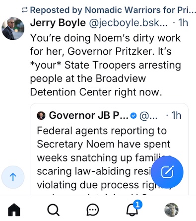 I realize it probably wasn't @govpritzker.illinois.gov's intent — but it appears that by providing state police to Broadview, it freed up more militarized ICE units to go tear gas people in neighborhoods.
