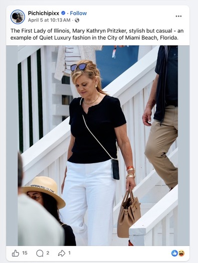 * Some paparazzo who goes by the online name Pichichipixx posted videos and photos of Gov. JB Pritzker and First Lady MK Pritzker during their recent visit to Miami Beach